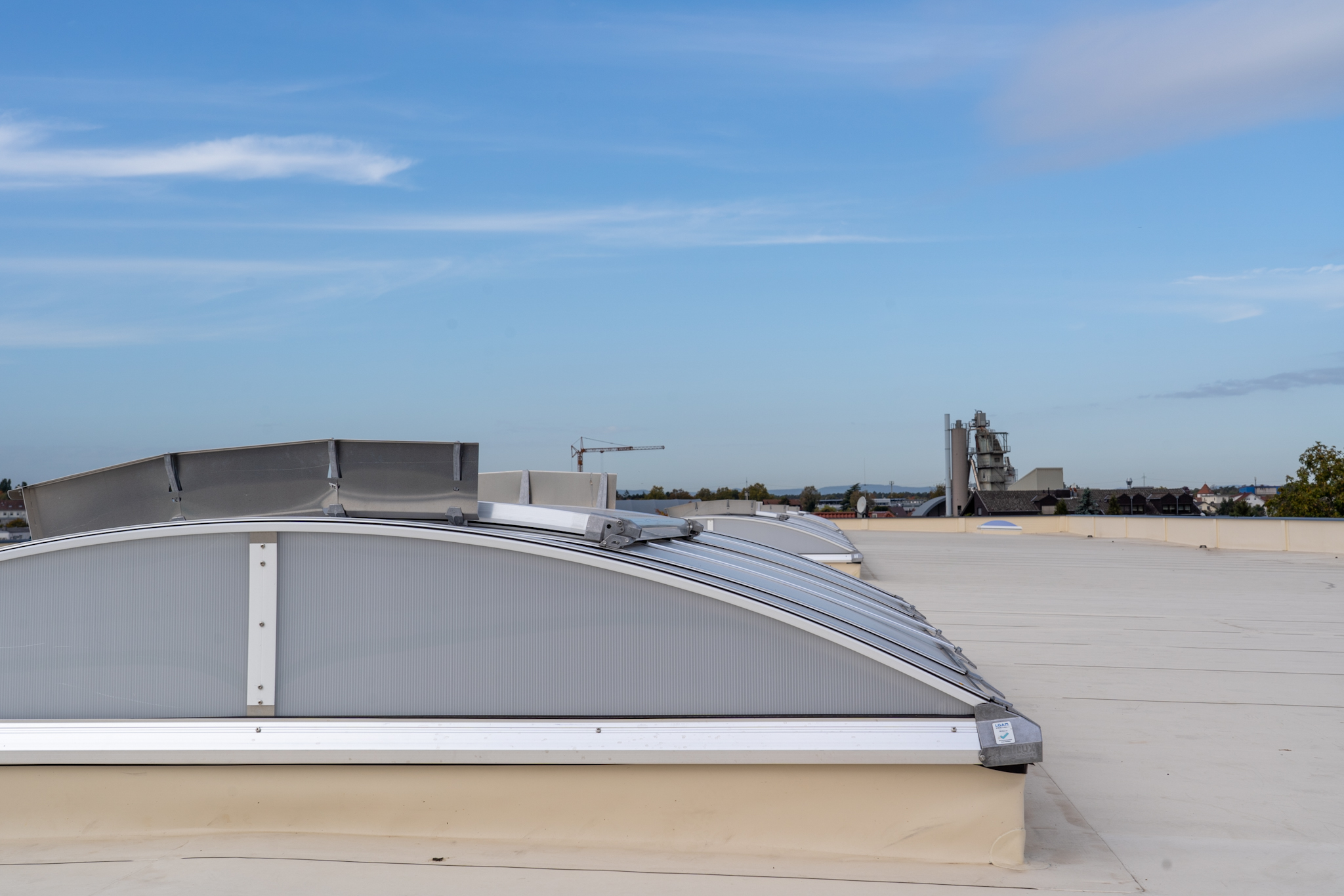 - Eingangsbereich mit Automatiktüren und Glasvordach